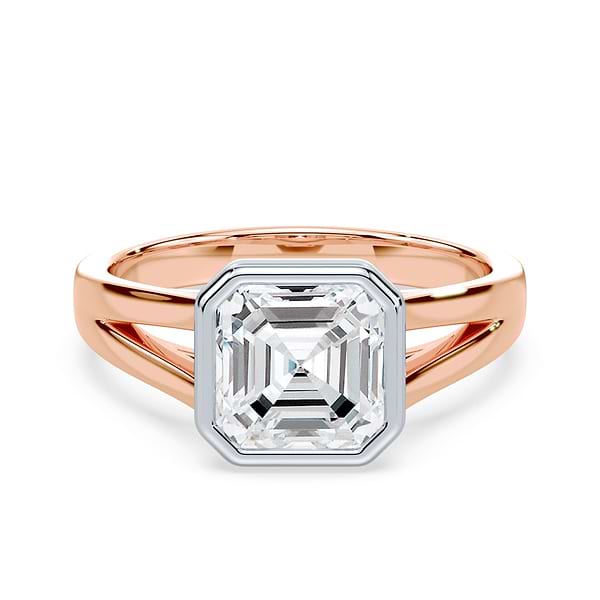Asscher Cut Low Split Shank Bezel Ring