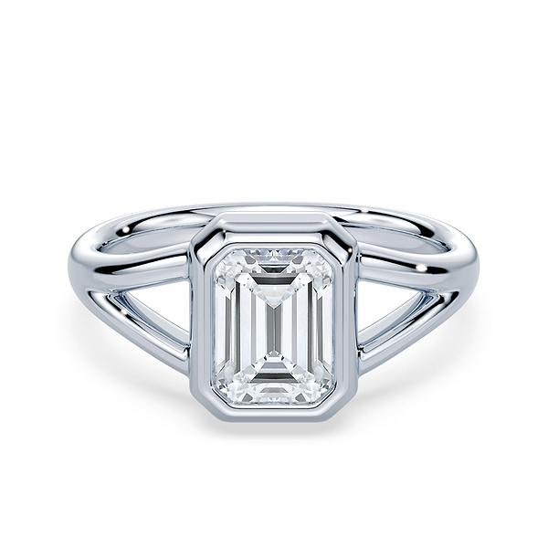 Emerald Cut Split Shank Bezel Ring