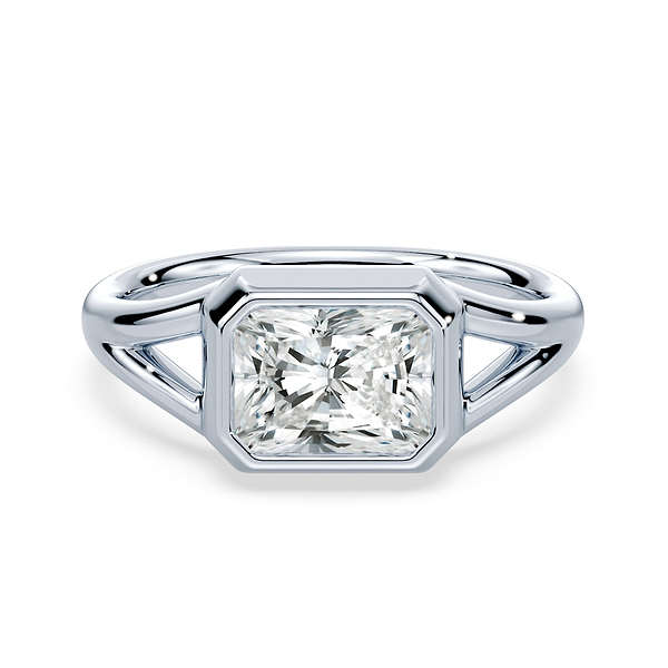 Radiant Cut East-West Split Shank Bezel Ring