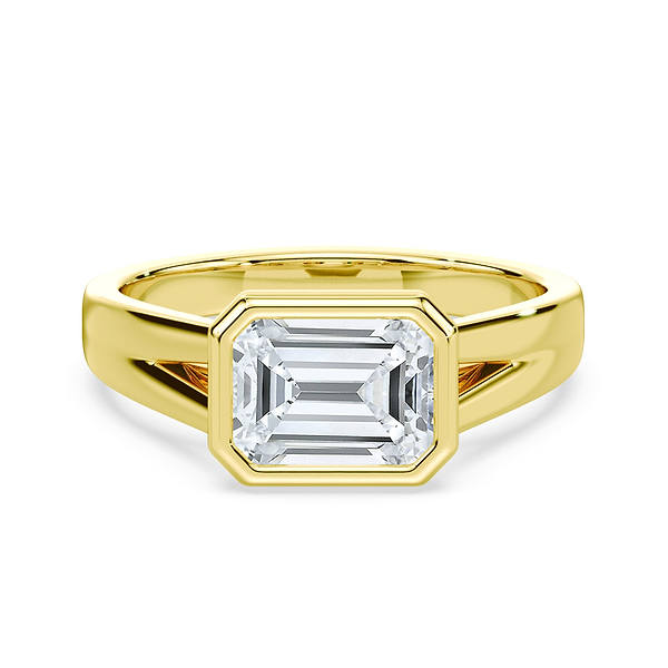 Emerald Cut East-West Split Cathedral Bezel Ring