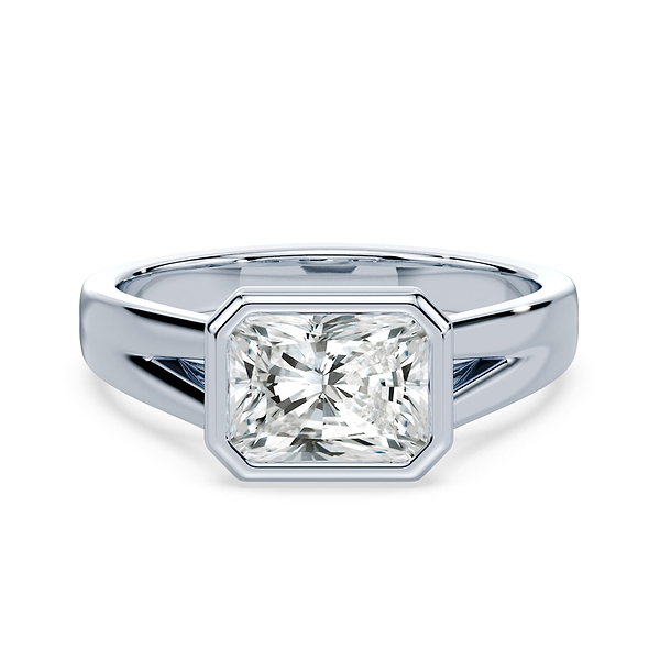 Radiant Cut East-West Split Cathedral Bezel Ring
