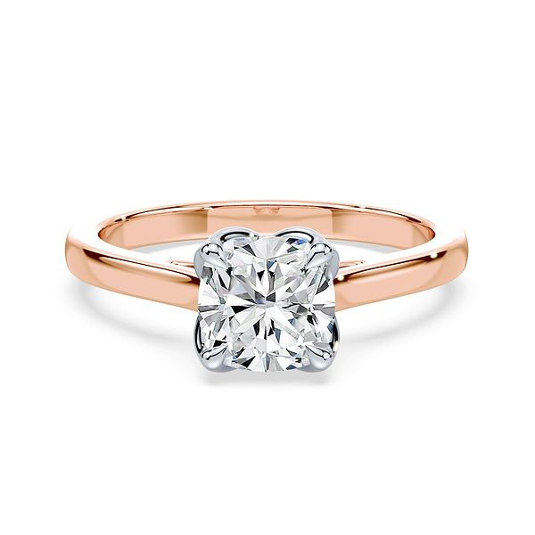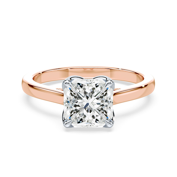 Two Tone Rose Gold Cathedral Engagement Ring Collection: Choosing the perfect engagement ring is a thoughtful and meaningful process. Is it the diamond cut they’ll love? The metal color they desire? Will it fit effortlessly into their everyday life? At Plum Diamonds, we go further by also considering how your engagement ring style fits your values. That mindfulness is at the heart of our collection of two tone rose gold cathedral engagement rings.