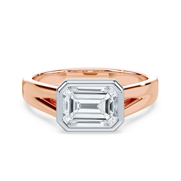 Emerald Cut East-West Split Cathedral Bezel Ring