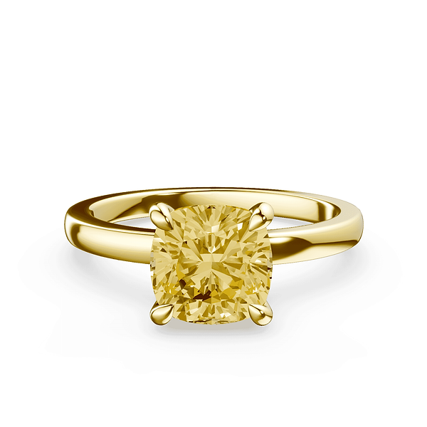 Cushion Cut Low Profile Yellow Diamond Ring