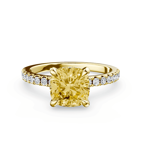 Cushion Cut Low Profile Yellow Pave Ring