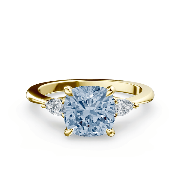 Cushion Cut Three Stone Blue Diamond Ring