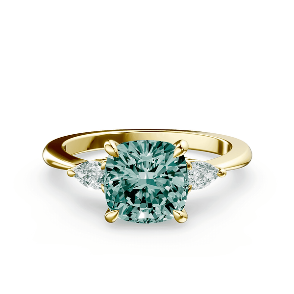 Cushion Cut Three Stone Green Diamond Ring