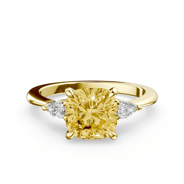 Cushion Cut Three Stone Yellow Diamond Ring