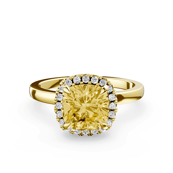 Cushion Cut Halo Yellow Diamond Ring