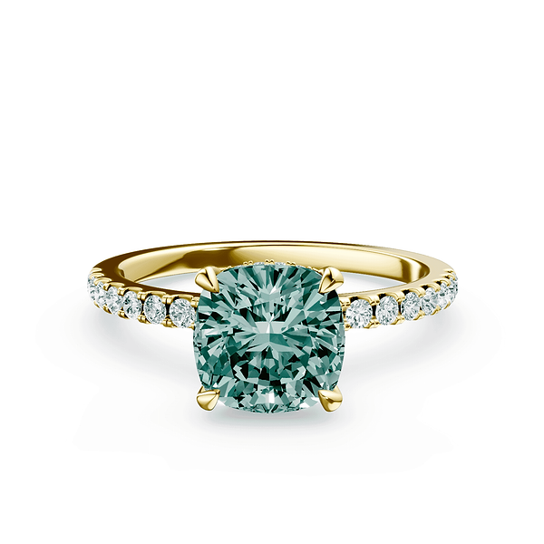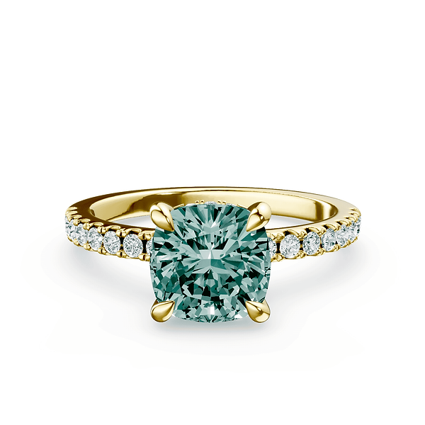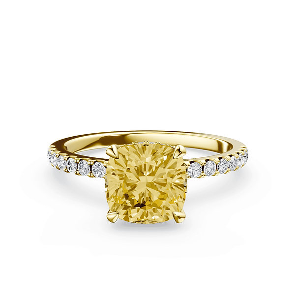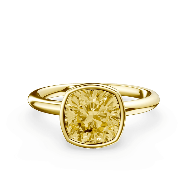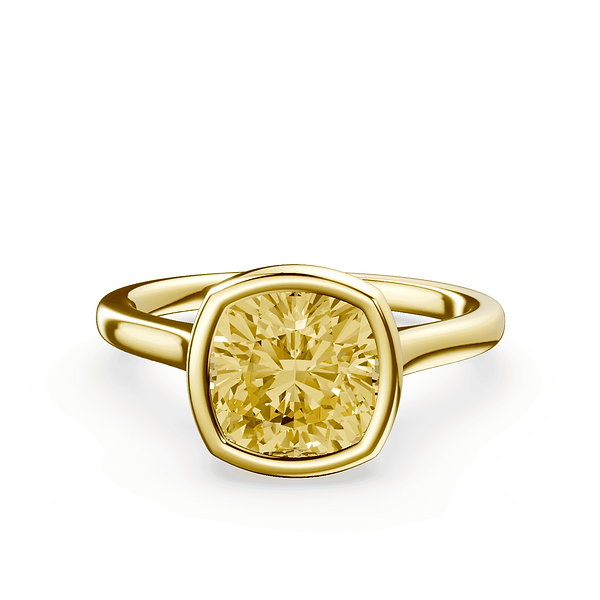 Cushion Cut Cathedral Bezel Yellow Diamond Ring