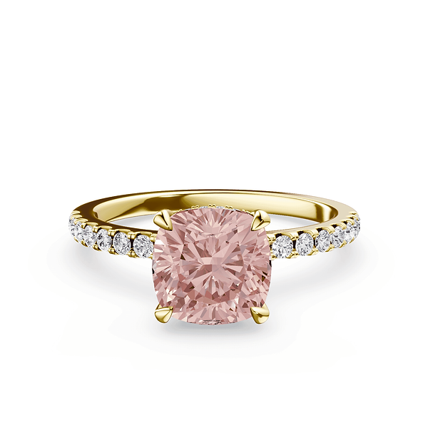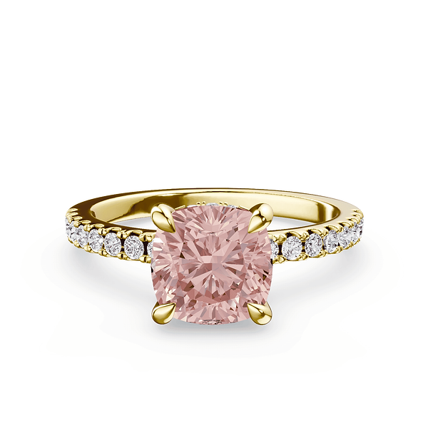 Cushion Cut Cathedral Bezel Pink Diamond Ring