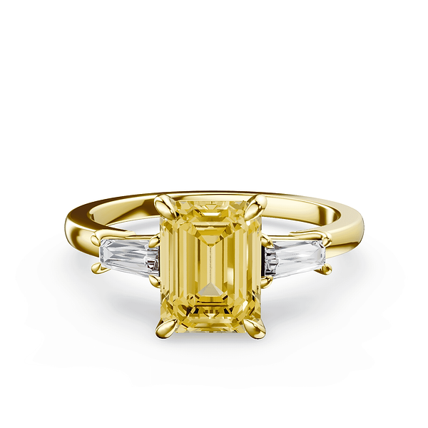Emerald Cut Three Stone Yellow Diamond Ring