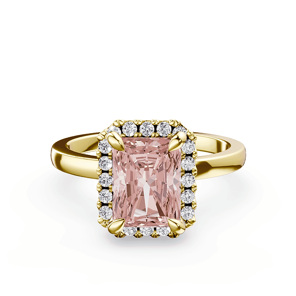 Emerald Cut Halo Pink Diamond Ring