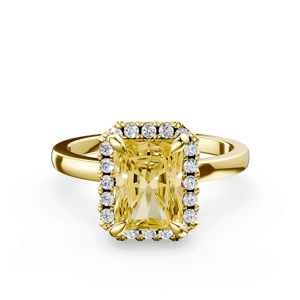 Emerald Cut Halo Yellow Diamond Ring