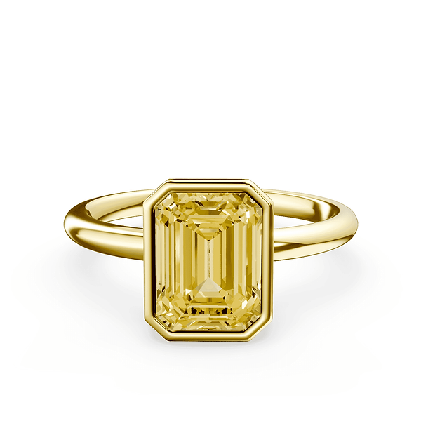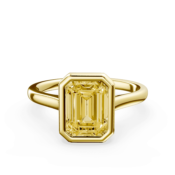 Emerald Cut Bezel Yellow Diamond Ring