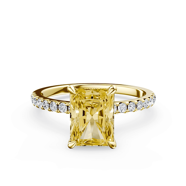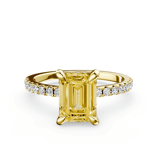 Emerald Cut Yellow Diamond Pave Ring