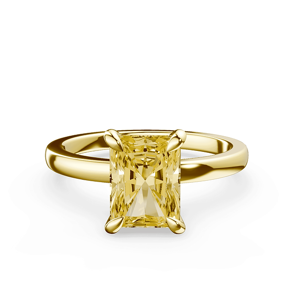 Emerald Cut Cathedral Bezel Yellow Diamond Ring
