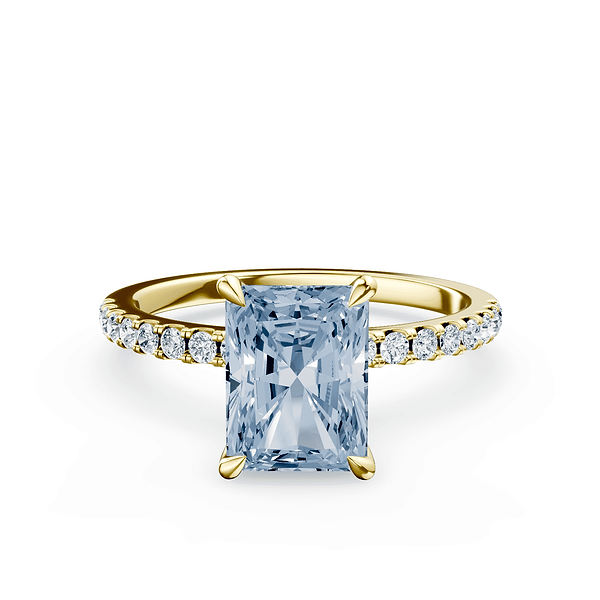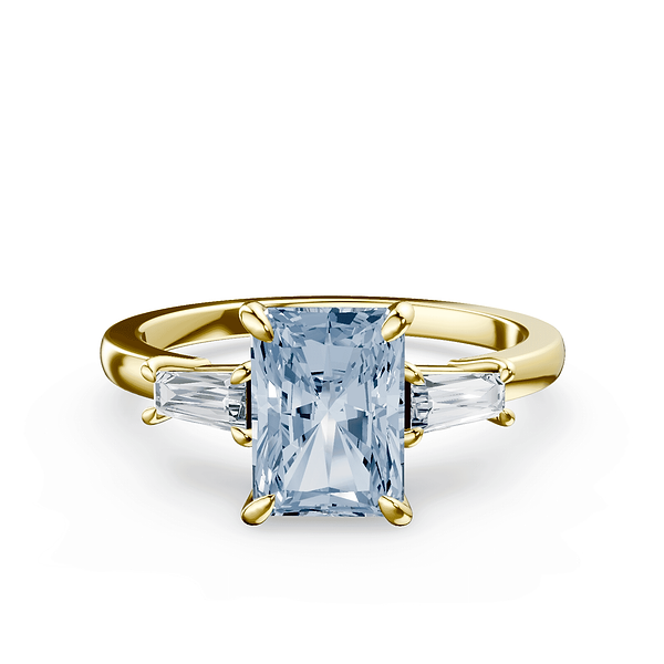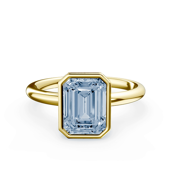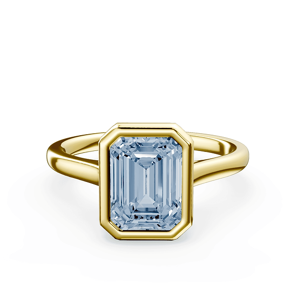 Emerald Cut Cathedral Bezel Blue Diamond Ring