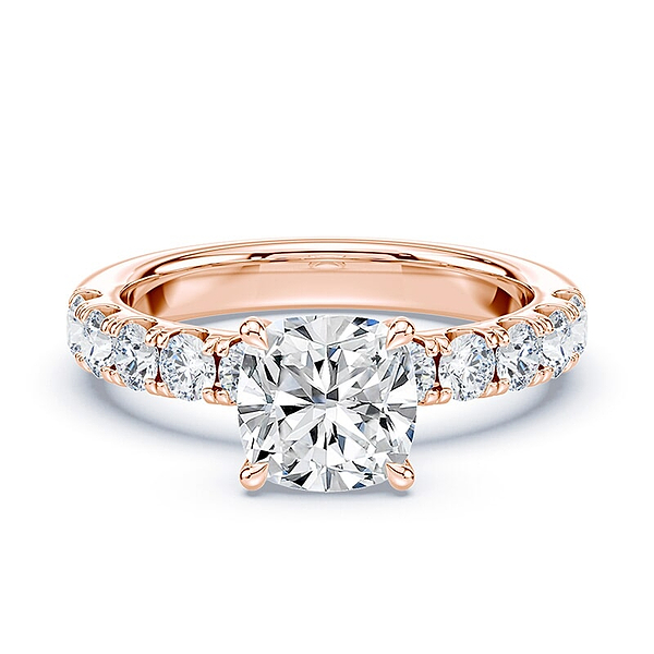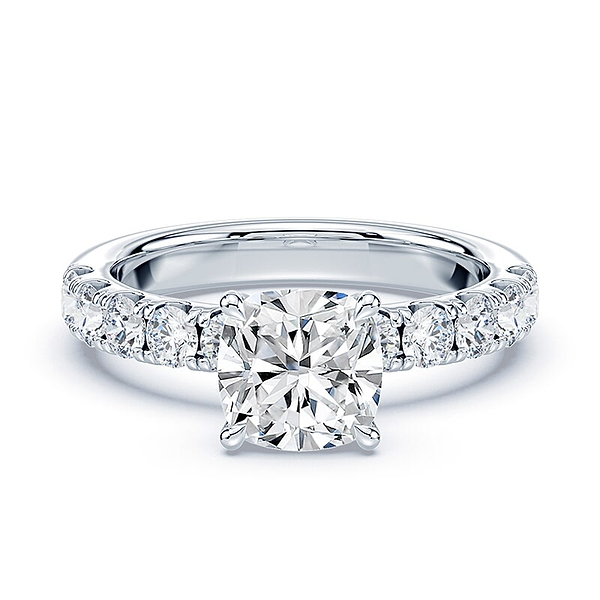 Cushions can be cut softly squared or elongated, a recent favorite. Elongated cushion cut diamonds are available in all designs.