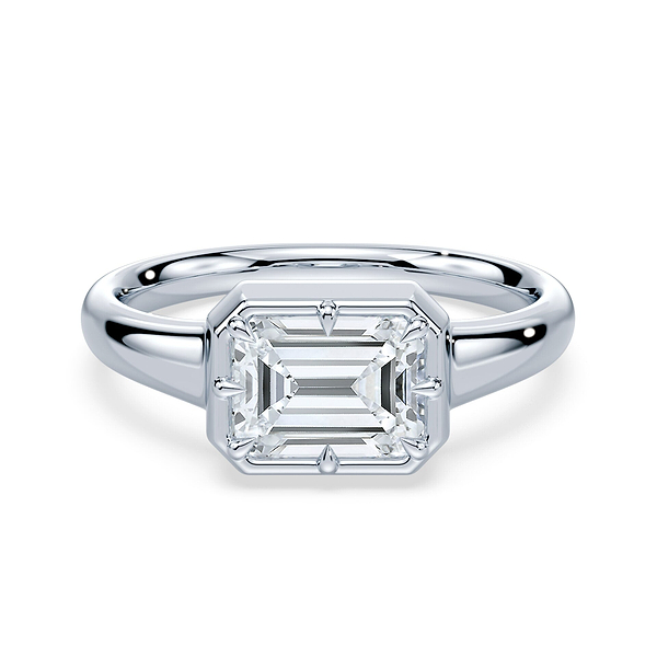 Emerald Cut White Gold Engagement Ring Collection: With its long, clean lines and wide open facets that beautifully reflect light, we aren’t surprised you’re in love with emerald cut diamonds. We are, too. That’s why we’ve designed a collection that shows just how stunning and versatile the cut is. Elevated by sustainably sourced white gold and lab grown diamonds, this collection features classic designs like the Emerald Cut Low Profile Solitaire, unique designs like our East West Cathedral Ring. If you love glam, our Emerald Cut Wide Pave Ring is a great option.