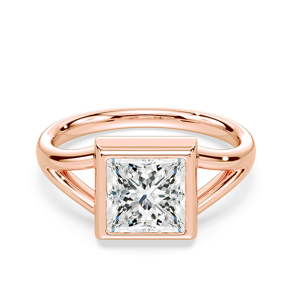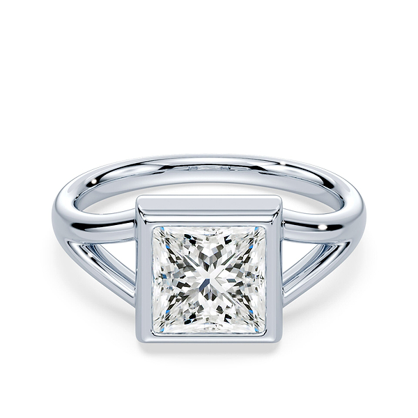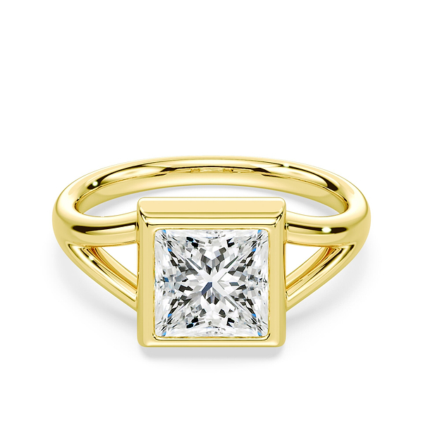 Princess Cut Low Split Shank Bezel Ring