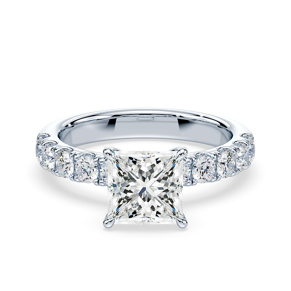 Princess Cut Pave Cathedral Ring
