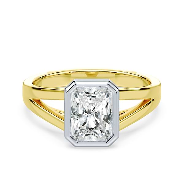 Radiant Cut Split Shank Bezel Ring