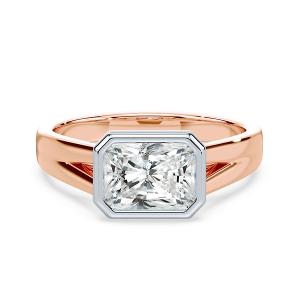Radiant Cut East-West Split Cathedral Bezel Ring
