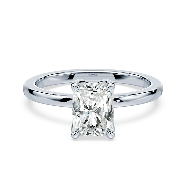 Solitaire Radiant Cut Engagement Rings: So, you’ve not only fallen in love with your partner but with radiant cut solitaire engagement rings - you’re a good picker. At Plum Diamonds, we understand how important both choices are and we’ve spent years ensuring that making one of those choices is as easy as possible. Our collection of solitaire radiant cut engagement rings features stunning lab grown diamonds (more on that later) and a variety of settings that include pave bands, halo designs, and your choice of yellow gold, rose gold, platinum, white gold, and two tone metal for you to choose from.