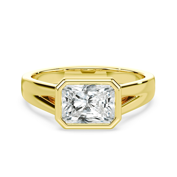 Radiant Cut East-West Split Shank Bezel Ring