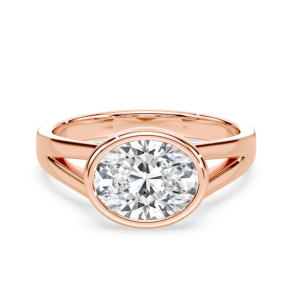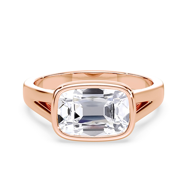 Radiant Cut East-West Split Cathedral Bezel Ring