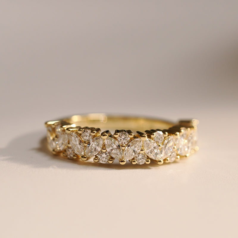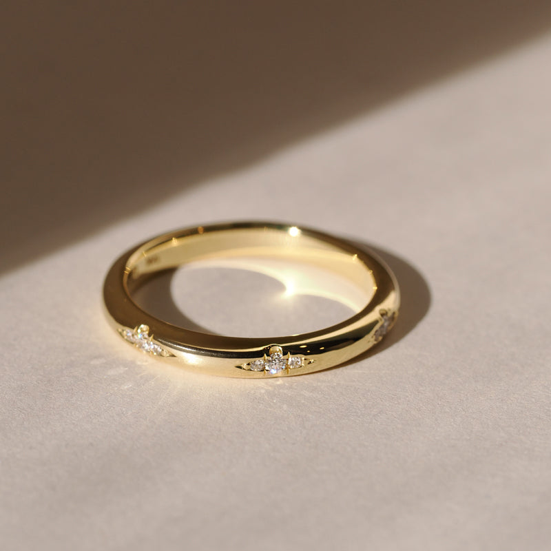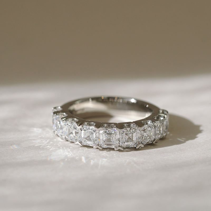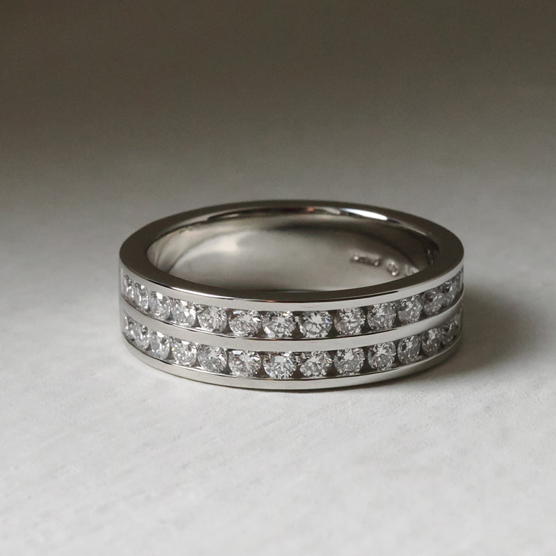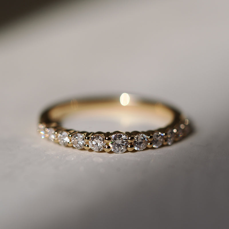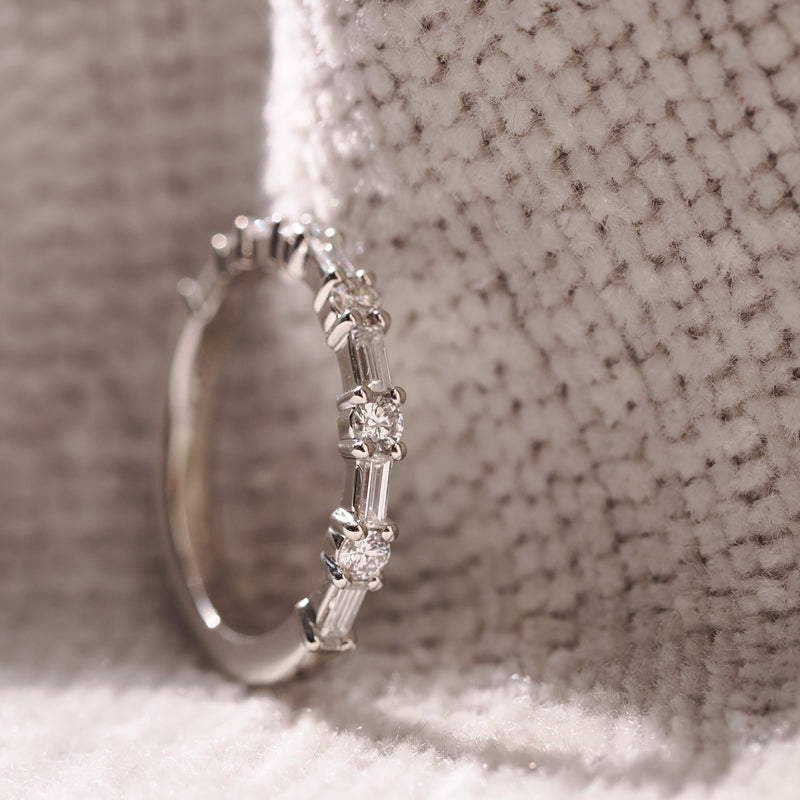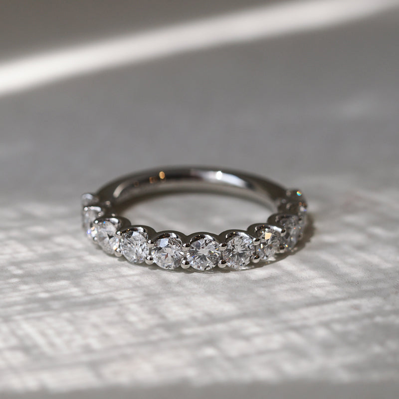Our standard, sparkling diamond bands measure 1.8mm, 2.5mm, and 3mm. If one of these doesn’t feel quite right, we’re happy to customize your band to your favorite width. Just ask—customization at Plum is simple.