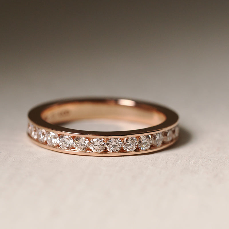 Rose gold rings are crafted in 14k; our gold alloy is a beautiful, rich rose color and it is alloyed to be more durable than alternatives.