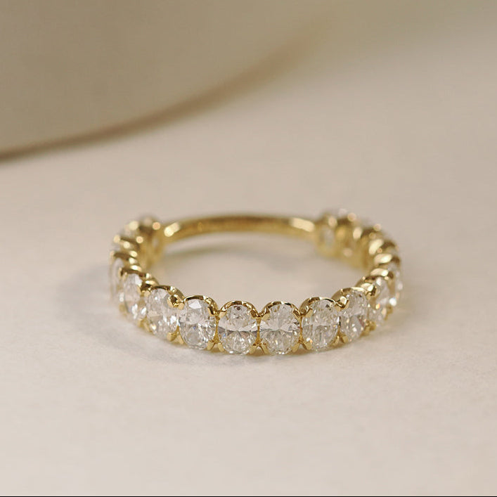 (Available on diamond bands) Choose this modification for additional diamonds on your band that wrap three quarters of the way around your finger. Standard diamond bands wrap halfway around your finger.