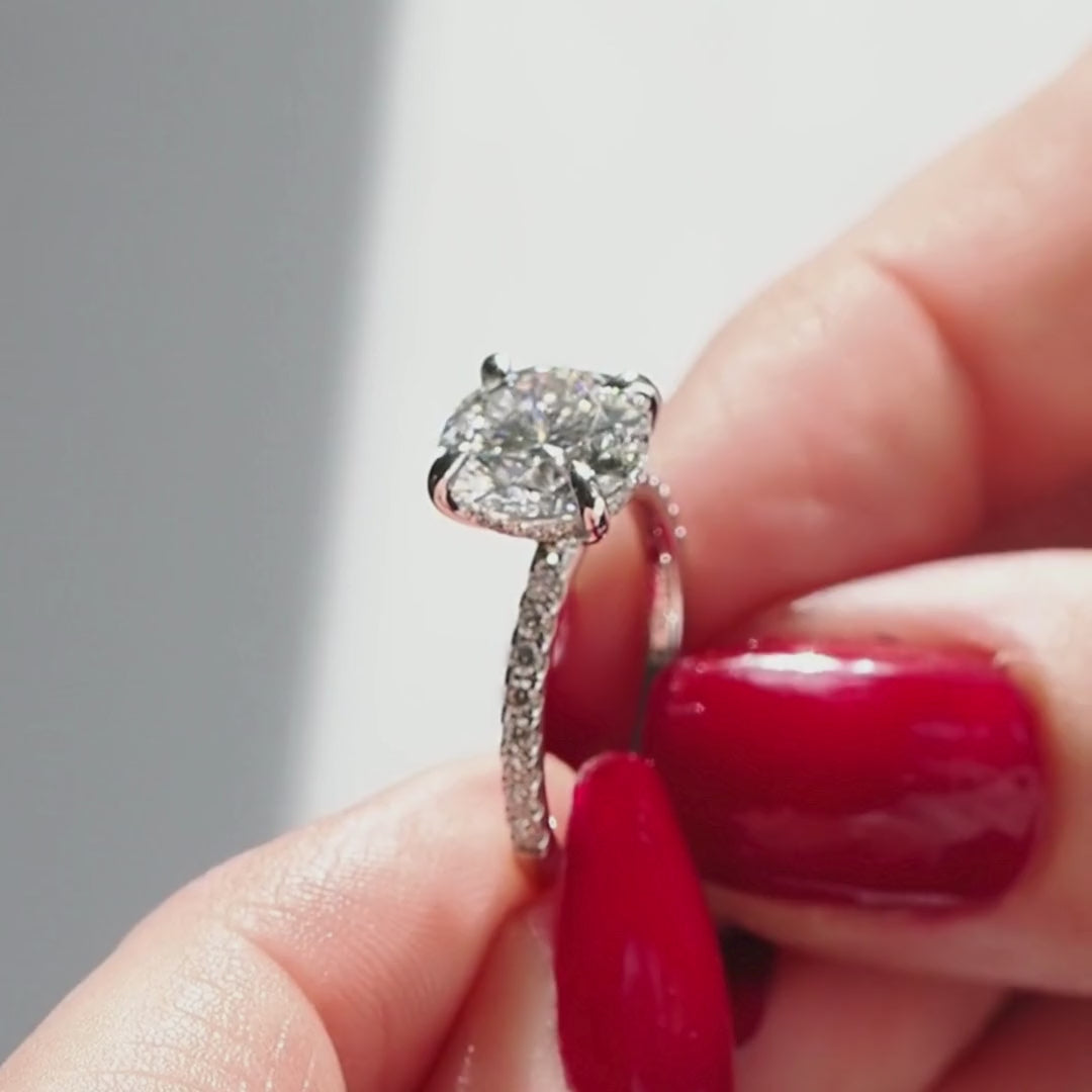 More about our Round Hidden Halo Tall V Slim Pave Ring: